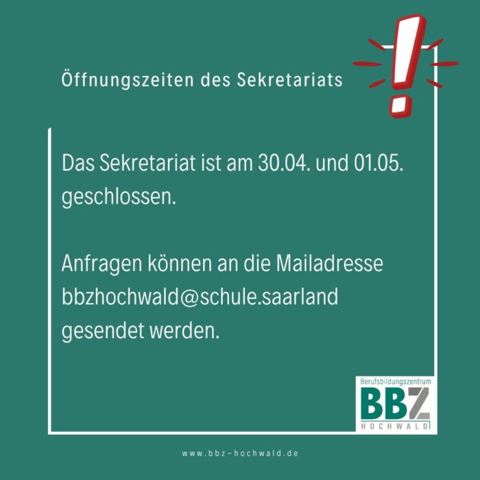 Am BBZ Hochwald haben wir unsere besten Auszubildenden gemeinsam mit ihren Ausbildern, Lehrkräften und unserer Schulleitung geehrt. Mit der Bestenfeier würdigen wir die besonderen Leistungen und das Engagement unserer Schülerinnen und Schüler. 🏆 Unsere ausgezeichneten Absolventen: • Till Peter Neis – 1. Landessieger Werkzeugmechaniker (IHK) • Anthony Sill – 1. Landessieger Verkäufer (IHK) • Alexander Huber – 2. Landessieger Metallbauer (HWK) Ein besonderer Dank gilt auch den Ausbildungsbetrieben und Ausbildern, die unsere Auszubildenden auf ihrem Weg begleitet und unterstützt haben. 🤝 Wir sind stolz auf eure Leistungen und wünschen euch weiterhin viel Erfolg auf eurem beruflichen Weg! 🚀